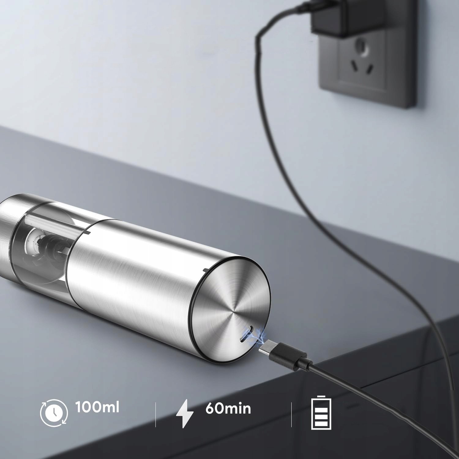 ☑️Світлодіодний індикатор загоряється відразу після помелу,і процес подрібнення добре видно. Цей продукт оснащено літієвою батареєю, яка має високу ефективність і тривалий час роботи в режимі очікування. Зарядний порт Type-C, передній індикатор завжди світиться під час заряджання та вимикається, коли заряджений повністю.