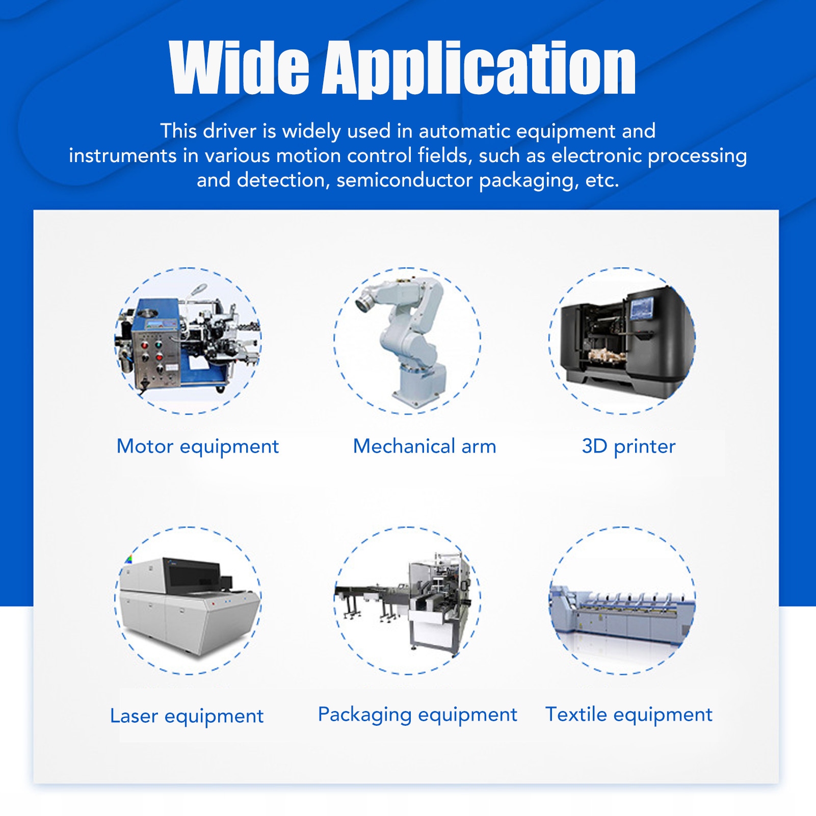 Сфера застосування: підходить для автоматичне обладнання та інструменти в різних сферах управління рухом, таких як електронна обробка та датчики, напівпровідникова упаковка, лазерне різання та зварювання, лазерний набір фотографій, пакувальні машини, гравірувальні машини, маркувальні машини, різальні машини, плотери для одягу, верстати з ЧПК, обладнання для автоматичного збірка тощо. Це перший вибір у галузі, де користувачі очікують низький рівень шуму, чудову високу швидкість і хорошу економічну ефективність.