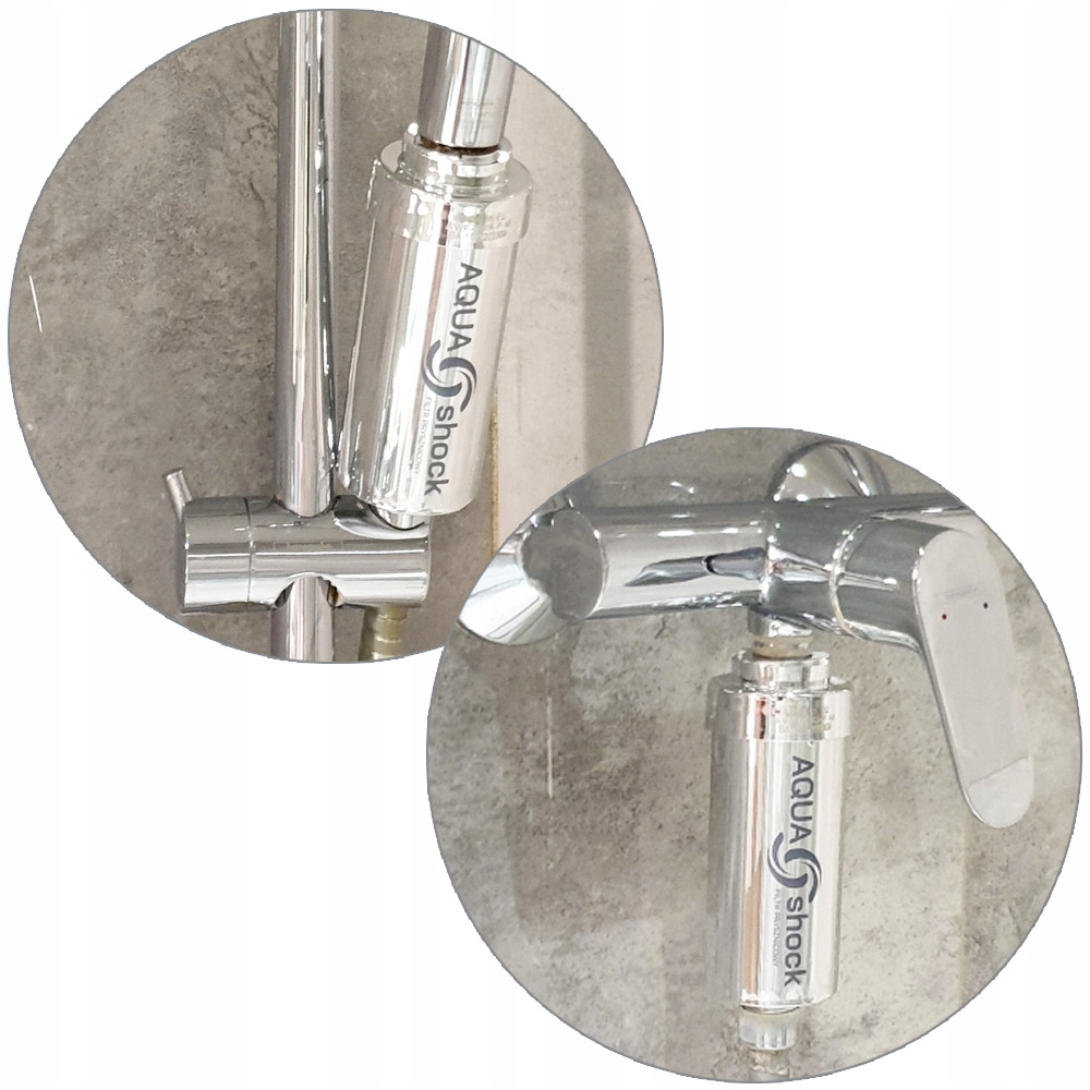 Фільтр Шоковий душ AQUA містить високоякісний наліт KDF, який затримує бактерії, важкі метали, а також нагар, який нейтралізує дію висихаючих солей кальцію та магнію. Забезпечує приємний і освіжаючий душ у чистій воді. Регулярне використання душового фільтра AQUA Shock робить шкіру більш гладкою та зволоженою.