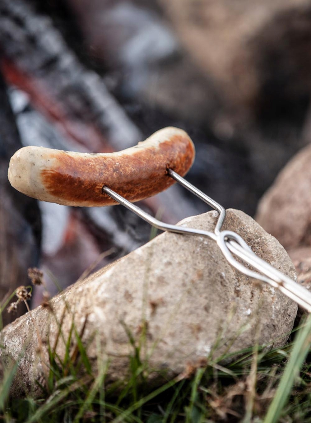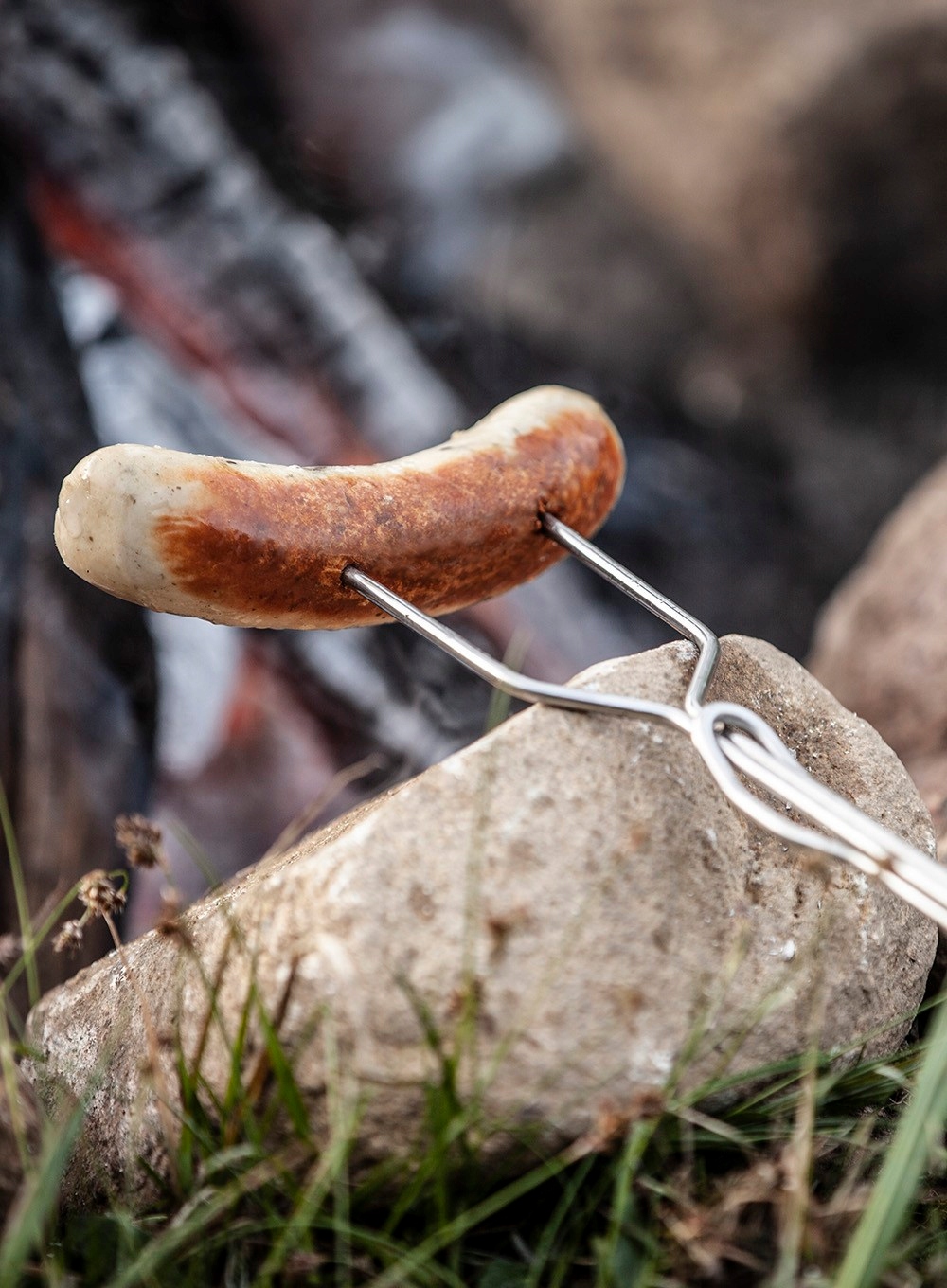 Шампур має два злегка загнутих догори зубця, які тримають сосиски та інші делікатеси на місці під час запікання. Довжина шампура для багаття регулюється, тому вам не доведеться стояти занадто близько до вогню під час смаження.