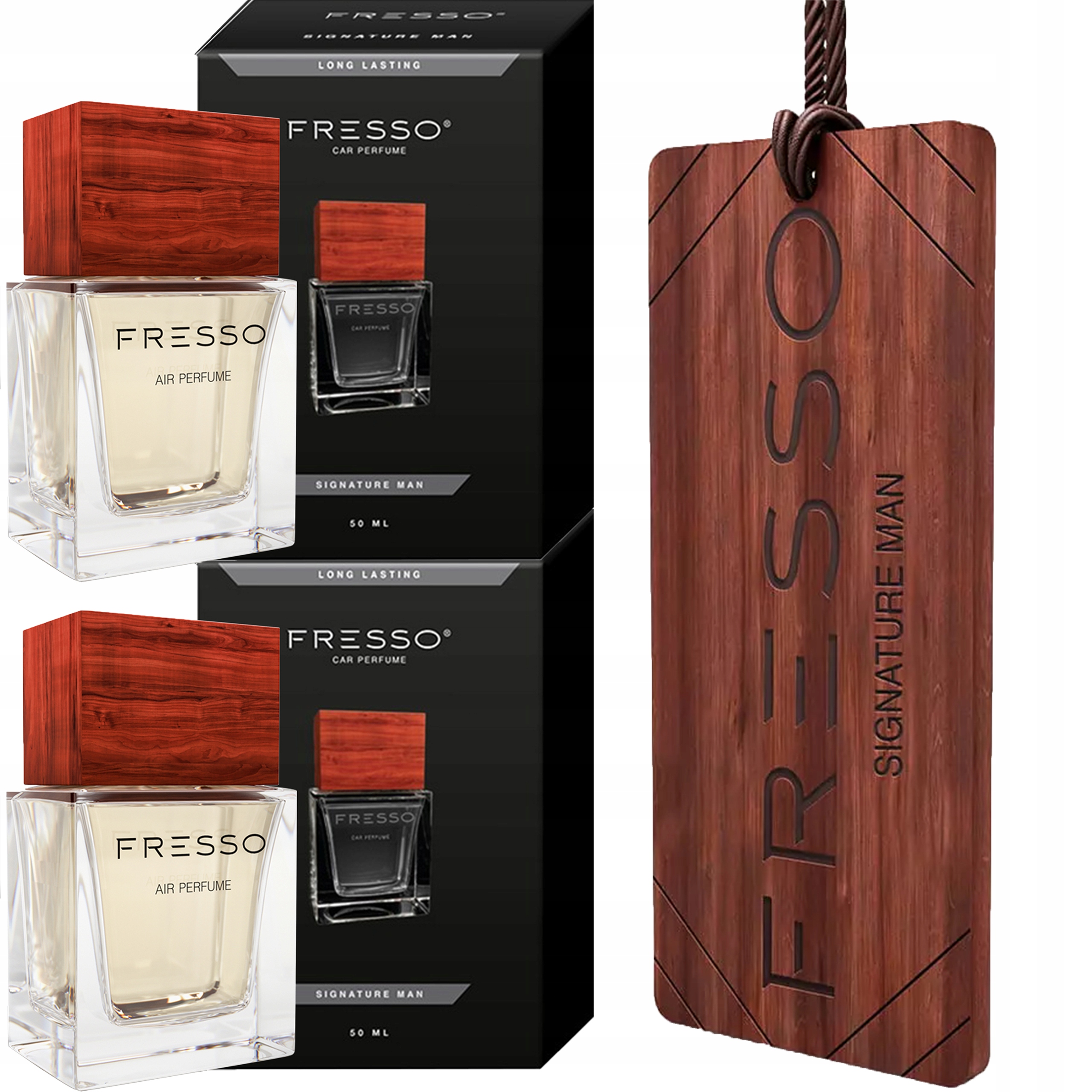 2× Fresso Signature Man Air Perfumy samochodowe 50 ml + Zawieszka zapachowa Fresso Signature Man 15 g