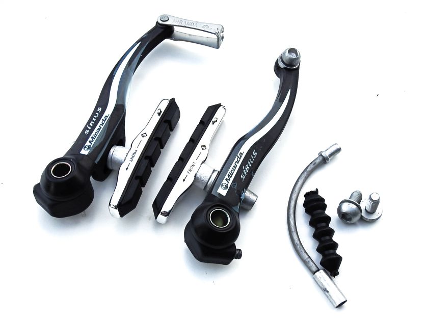 V-brake Miranda SIRIUS REAR Set — надзвичайно ефективне ободне гальмо для гірських велосипедів. Завдяки використанню матеріалів найвищої якості та точному виготовленню забезпечує безпеку під час руху по складній місцевості. Він простий в установці та ідеально підходить для гірських велосипедів. Домінуючим кольором є відтінки сірого, що робить це гальмо придатним для багатьох різних кольорів велосипедних рам.