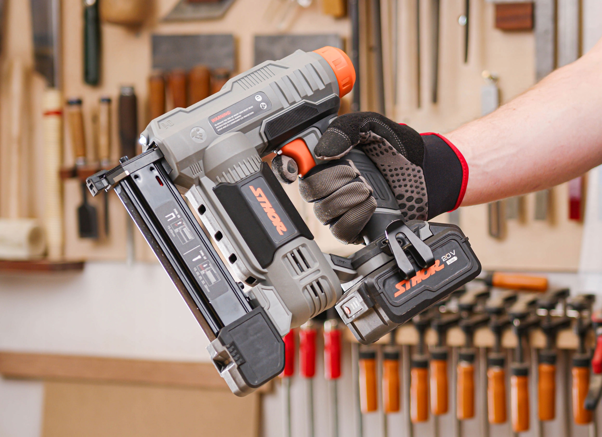 Сильний липкий наклеюючі скоби та нігті. ідеально підходить для декорування, конструкції та реконструкції меблів, наприклад при складанні м'яких панелей або їх зібрання. на одному акумуляторі заряджається 2 ах, що піднімаються від 500 до 1000 цвяхів, залежно від твердості деревини.