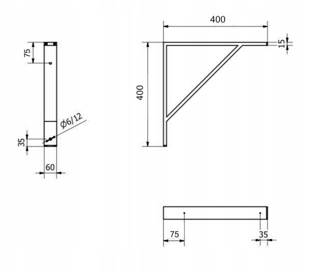 Технічний малюнок праворуч - це фактичні розміри кронштейна. Характеристики