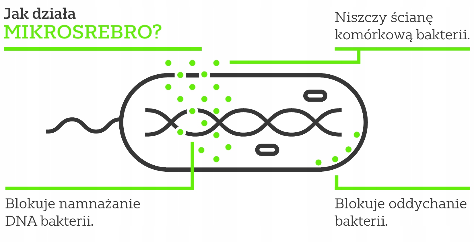 Ефективність мікросрібла майже стовідсоткова і пригнічує ріст мікроорганізмів, бактерій і особливо кишкової палички.