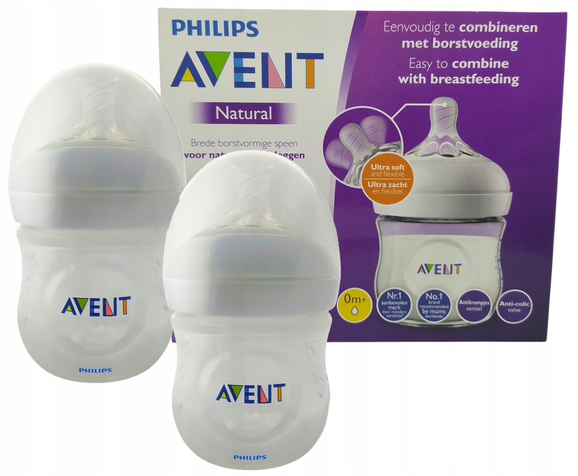 2 x ПЛЯШЕЧКА ДЛЯ ГОДУВАННЯ AVENT NATURAL 125мл + соска 0м+