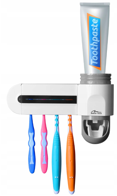 Media -Tech представляє відмінний пристрій для домашнього використання у ванній кімнаті - ультрафіолетова щітка УФ -стерилізатор MT6508 - 3 в 1: Організатор та УФ -стерилізатор для пензля з дозатором пасти. Обов’язкове обладнання для кожної ванної кімнати!