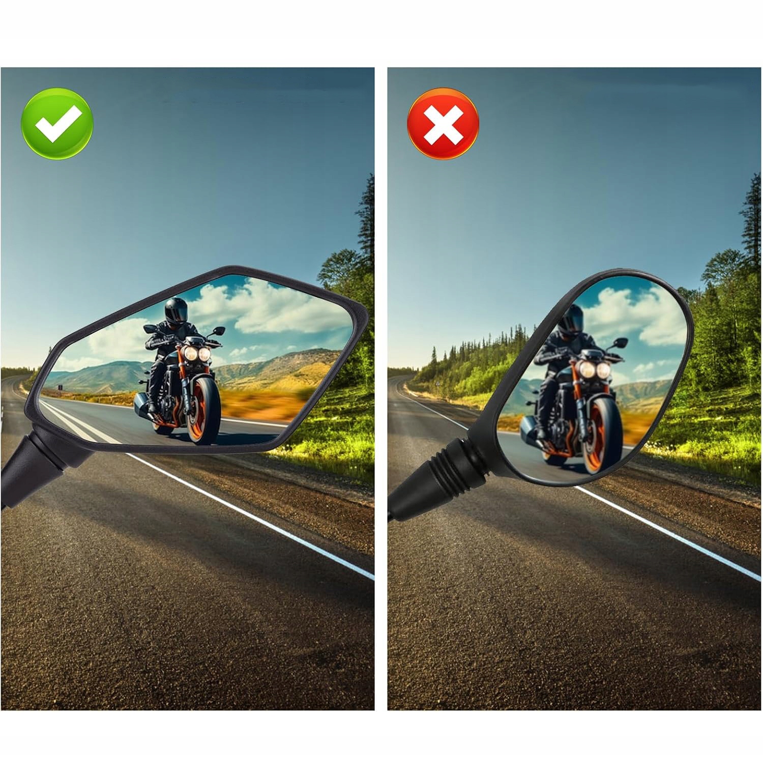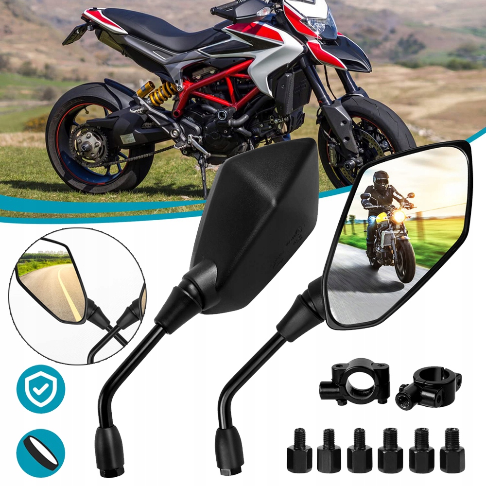 ☑ 【Широка сумісність】 Дзеркало рульового управління підходить для більшості марки мотоциклів, транспортні засоби, вуличні велосипеди, транспортні засоби, велосипеди BMX та скутери тощо. Вони також можуть бути встановлені на велосипеді та легко встановити.