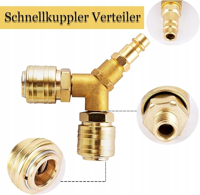Швидкий роз’єм розподілу, Nw 7,2 1/4, роз’єм для стисненого повітря, 2-сторонній розподільник стисненого повітря, перемикач стисненого повітря із зовнішньою різьбою, латунний розподільник стисненого повітря, розподільник Air Soft Y