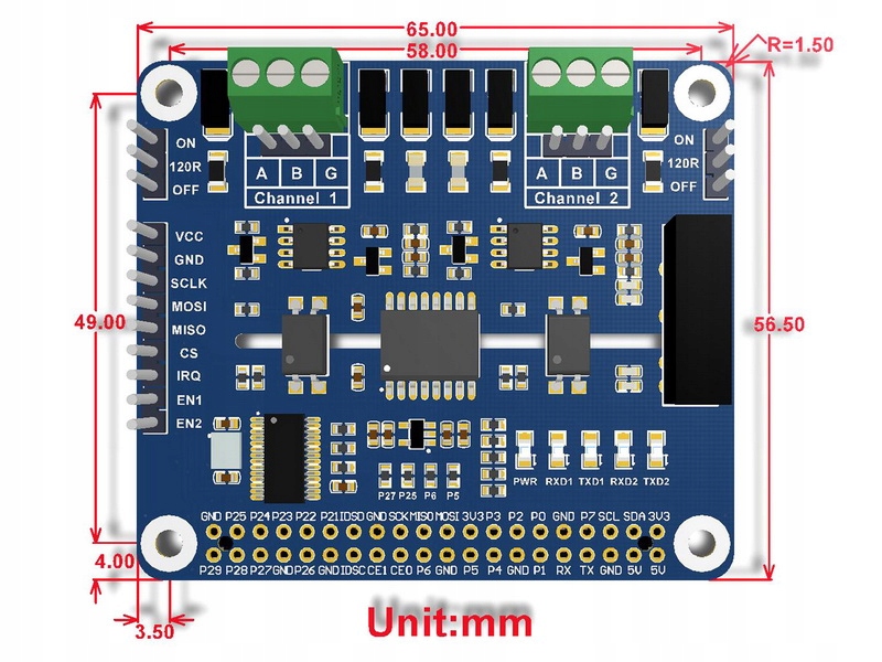 2-канальний ізольований модуль розширення HAT RS485, розроблений для Raspberry Pi, використовує рішення SC16IS752+SP3485 із вбудованими схемами захисту, такими як ізоляція джерела живлення, магнітна ізоляція ADI, діод TVS тощо.
