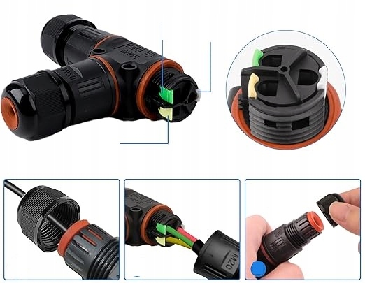 - Просте встановлення. Зовнішній кабельний роз’єм сконструйований так само, як і затискач, що спрощує його встановлення без використання інструментів чи пайки, хоча його можуть встановити навіть непрофесіонали. Після того, як кришки закручені, гумове кільце замикається навколо кабелю, повністю герметизуючи його. Для проводів діаметром від 3 до 7 мм можна розташувати дві шайби одна на одну, а велика шайба всередині призначена для проводів діаметром 7-12 мм.