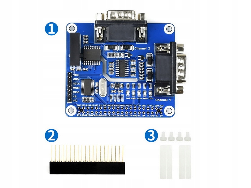 Розширення HAT для Raspberry Pi, що забезпечує зв’язок RS232, додатковою функцією модуля є ряд захистів і відокремлення шини RS232 від Raspberry PI. Модуль використовує перетворювач шини SPI SC16IS752 на дві шини RS232. Стабільність, швидкість і надійність роблять систему ідеальною для програм автоматизованого керування.