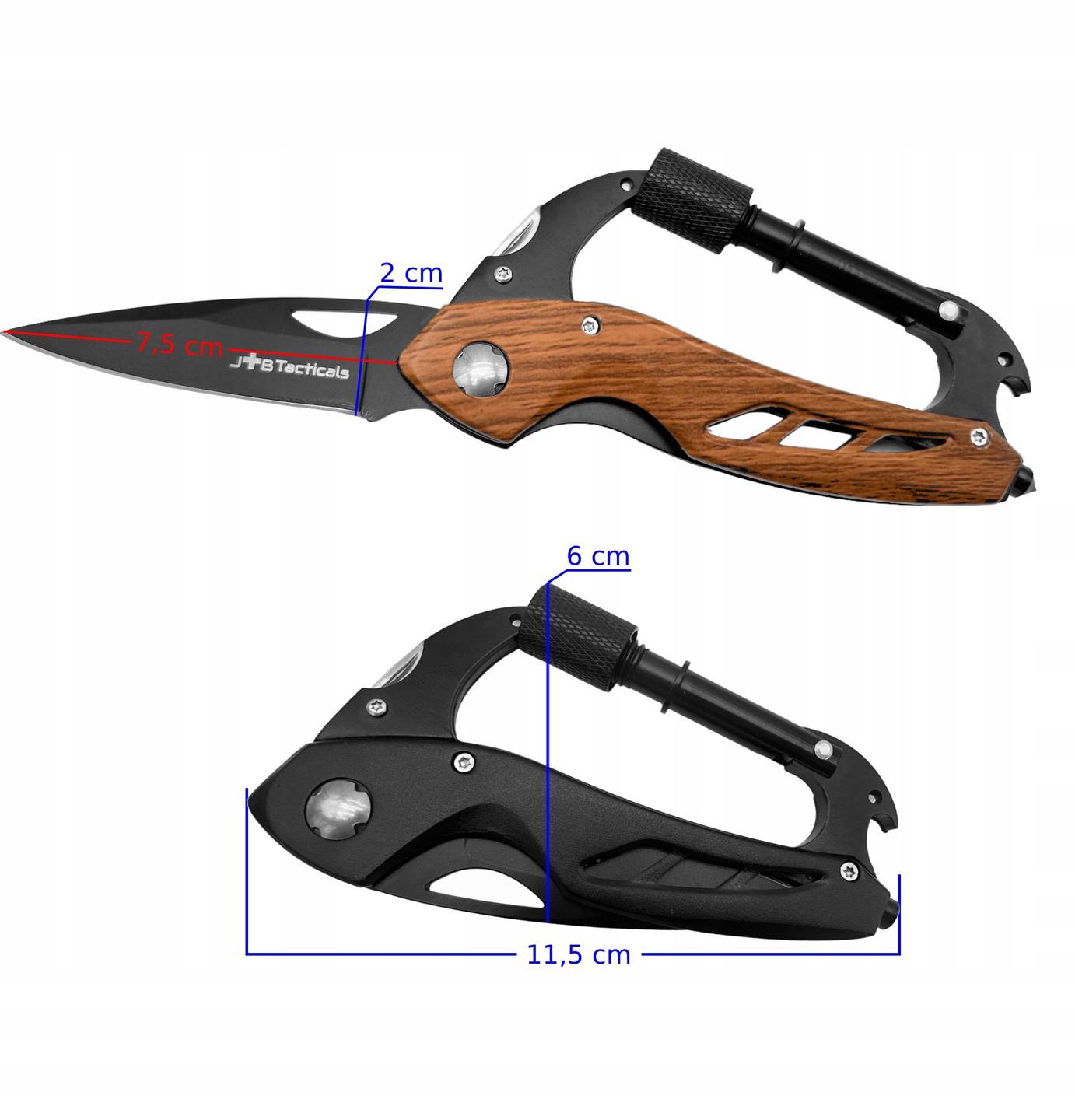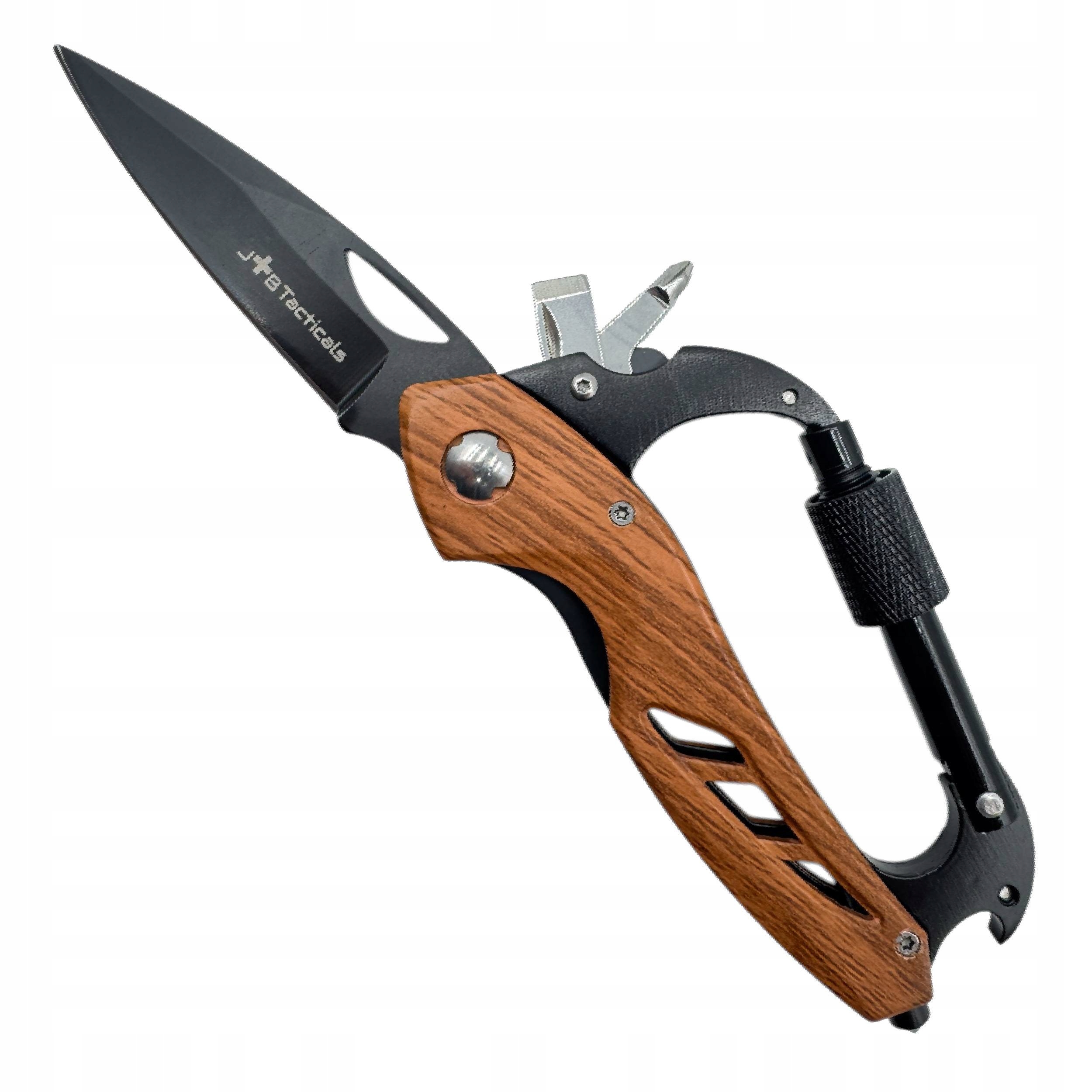 Карабін JB Tacticals 6-in-1 - це не тільки звичайний карабін, а й багатофункціональний інструмент, який має 6 різних інструментів. Ніж із чорним лезом, мультитул із плоскою викруткою та хрестиком, відкривачка для пляшок та склобій – це лише деякі з них.