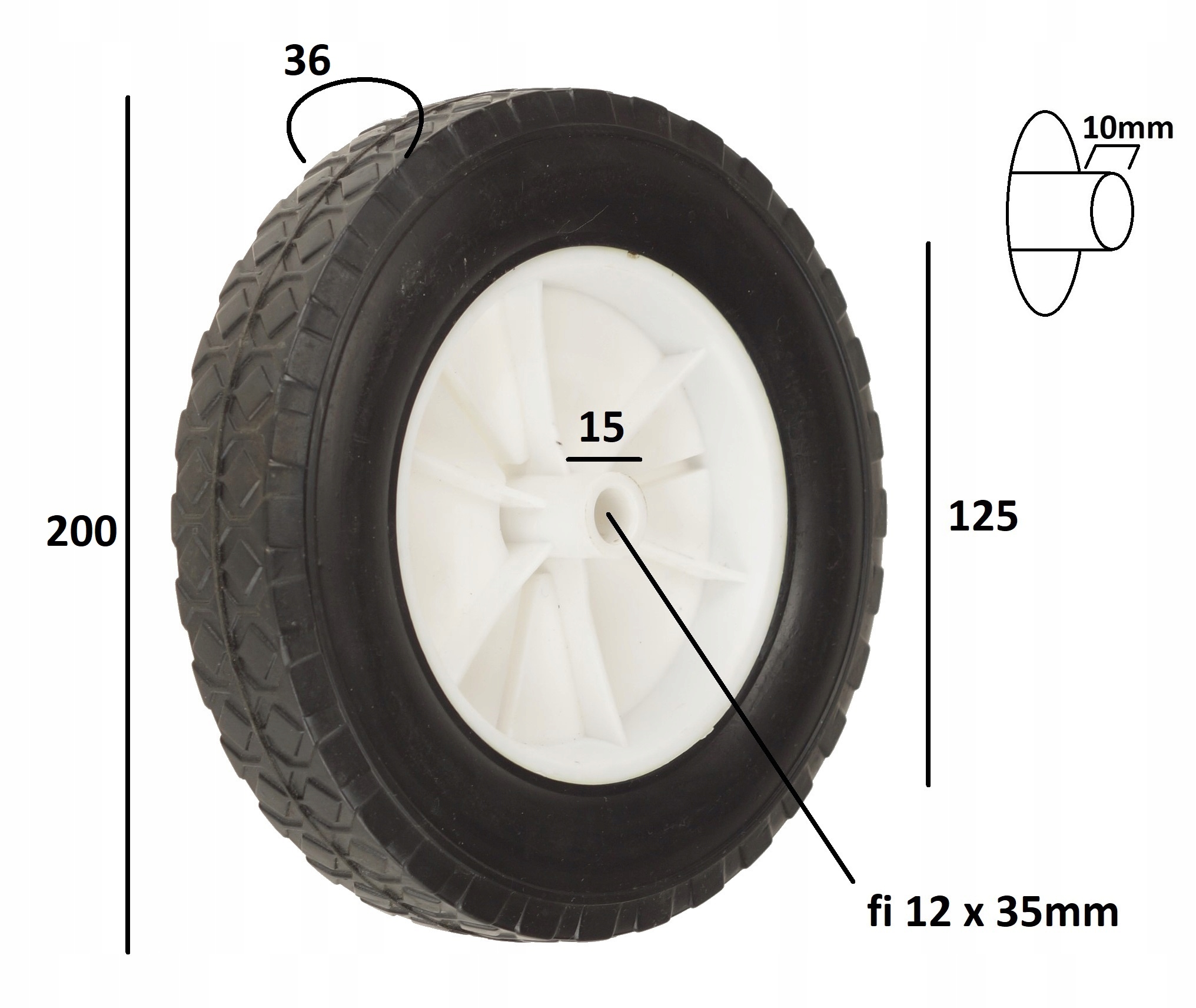 - Колесо можна використовувати в ручних візках, садових косарках і розкидачах добрив