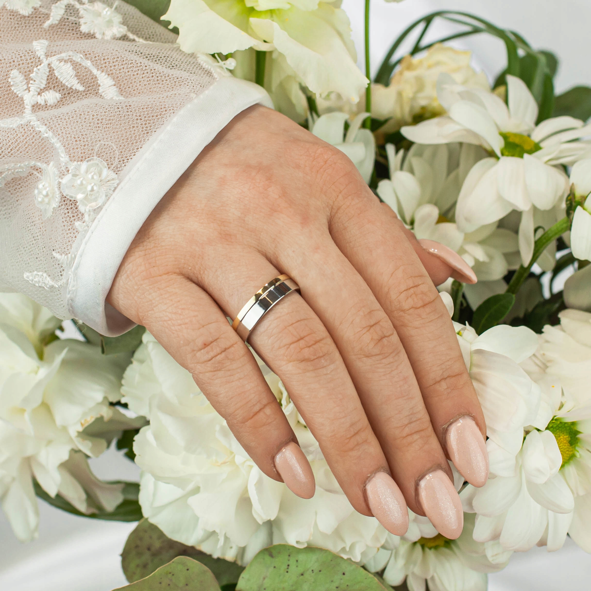 Надзвичайно елегантні обручки, що складаються з двох шарів. На класичну обручку з білого золота назавжди встановлюється обручка з жовтого золота. Це створює гарний дворівневий ефект. Поєднання білого та жовтого золота надає обручкам надзвичайної елегантності. Висока якість золота 585 проби, з якого виготовлені обручки, гарантує, що вони служитимуть вам вічно.