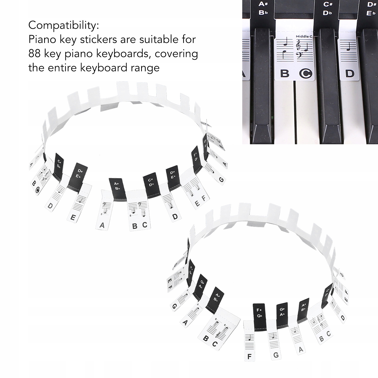 5. СУМІСНІСТЬ: наклейки з клавішами піаніно підходять для 88 клавіатур піаніно, охоплюють увесь діапазон клавіатур, підходять для різноманітних марок і моделей піаніно, створюючи універсальний інструмент для навчання фортепіано.