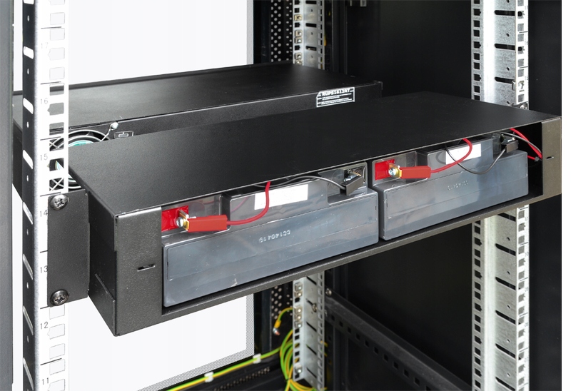 Акумуляторний корпус для 19" RACK шаф призначений для установки акумуляторів 2x17Ah або 4x7Ah. Він монтується в задній частині шафи RACK серії: