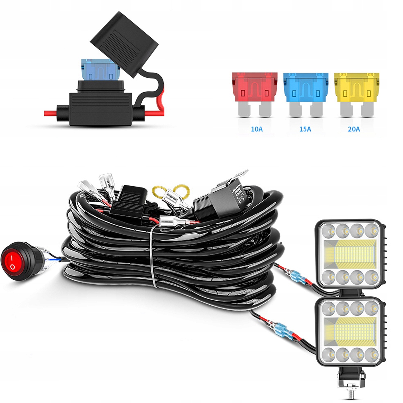Промінь 2 світлодіодних робочих світильників може бути підключений до двох світильників одночасно, вантажопідйомність до 320 Вт, довжина 10 футів, достатня для встановлення світлодіодних світильників у будь -якому місці транспортного засобу. Цей набір проводки сумісний з будь -якою світлодіодною, HID або галогенною освітленням, робочим світлом. Поточний, більш безпечний та надійний. Його можна використовувати для світлодіодного робочого освітлення 10 Вт ~ 320 Вт.