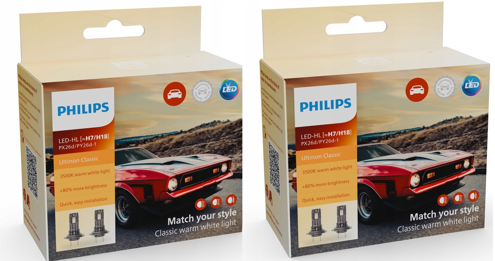 Оновіть свої фари без шкоди для стилю! Класичні світлодіодні лампи Philips Ultinon випромінюють елегантне тепле біле світло, яке можна порівняти з іншими галогенними фарами, що надає вашому автомобілю позачасовий вигляд. Відчуйте ідеальне поєднання класичного стилю та сучасних технологій.
