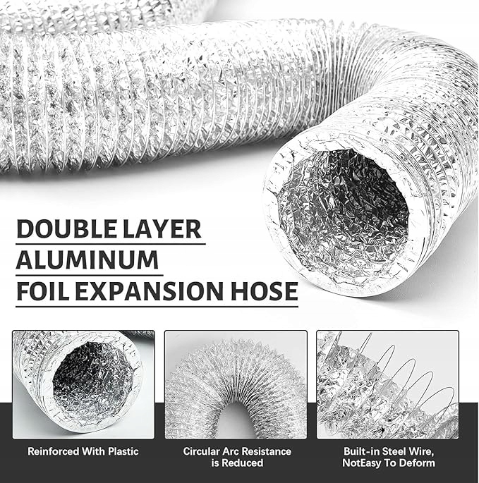 - Гнучкий і практичний: гнучка довжина роликового вентилятора, трубку можна вкоротити для різних застосувань. З 2 парами металевих затискачів для легкого налаштування та безпечного з’єднання.