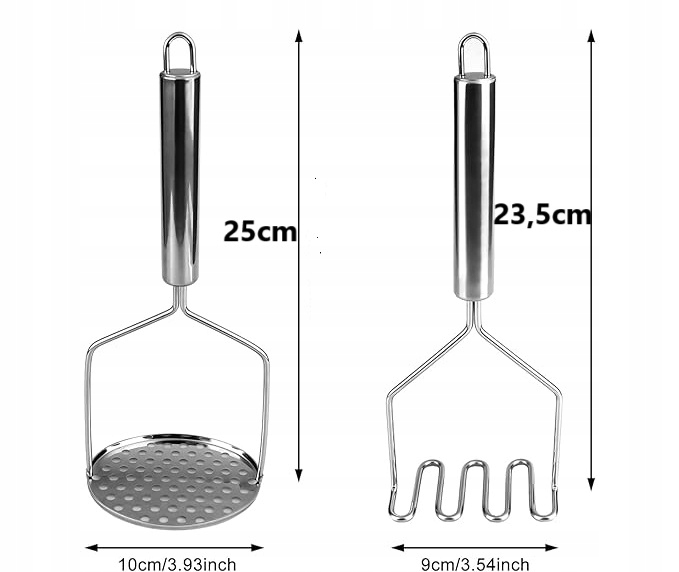- 【Картопляні товкачі з нержавіючої сталі 2 шт.】Кругле картопляне пюре/пюре з семи зерен має рівномірно розташовані круглі отвори для отримання однорідного та ніжного картопляного пюре. Інша гофрована картопляна машина має широку щілину між металевою рамою для полегшення затирання.
