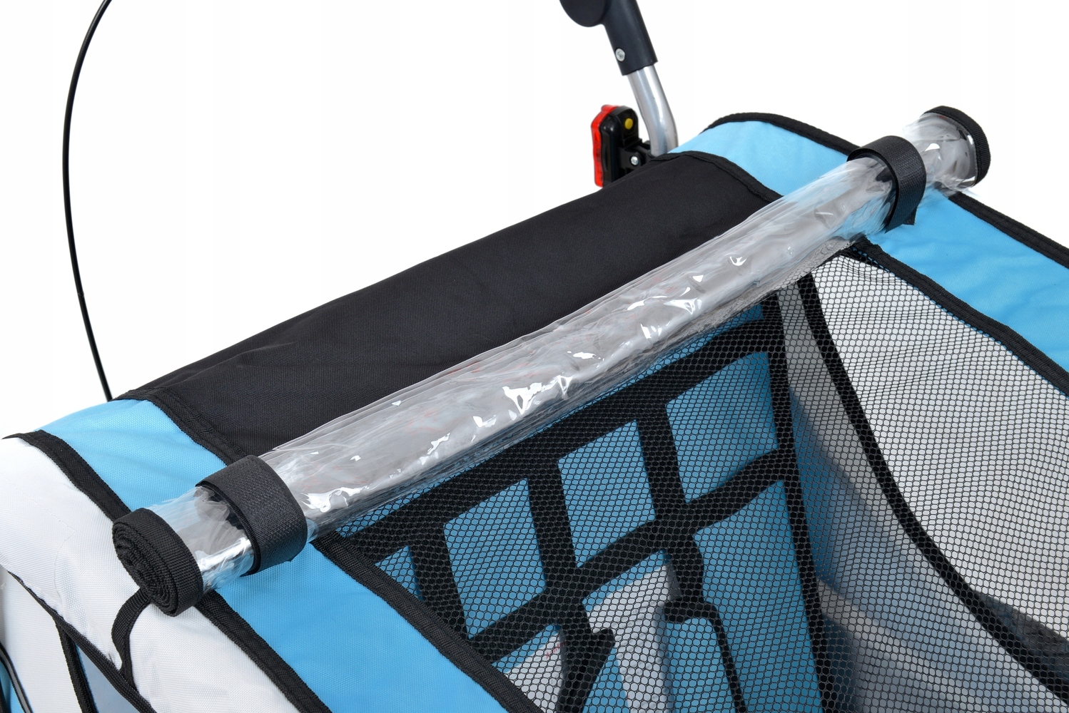 Внутрішня частина причепа оснащена ременями безпеки, що забезпечує безпеку наших дітей. На сидінні є подушка, що забезпечує комфортне сидіння. У причепі є простір для ніг, а коли дитина сидить, їй комфортно під час їзди, адже її ніжки нижче. Коли його взуття брудне, весь бруд знаходиться в цьому місці і не поширюється по салону.