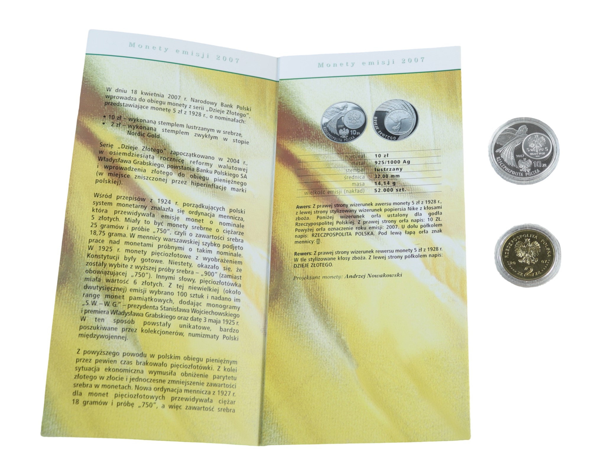 2 монети NBP - PLN 10 та PLN 2 - Історія Злоті - Nike - 2007 рік + папка