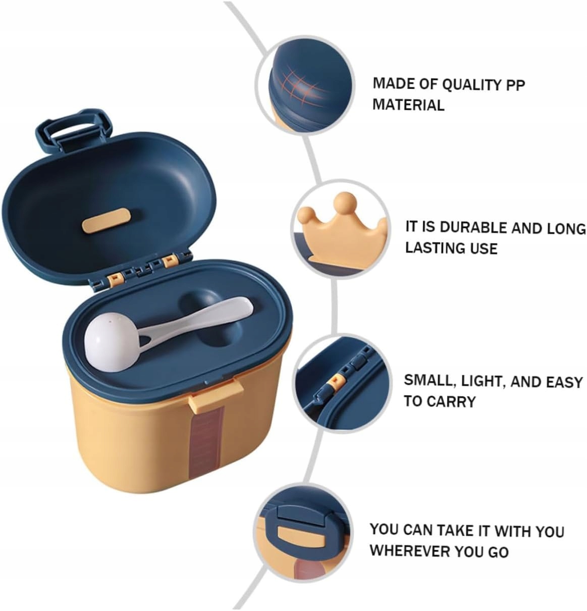 Диспенсер для дитячого порошкового молока Цей продукт невеликий і простий у перенесенні, щоб ви могли взяти його куди завгодно. Контейнер для сухого дитячого харчування. Контейнер для герметизації їжі для немовлят у свіжому повітрі. Контейнер для зберігання закусок контейнера для рецептів з незалежними місцями для зберігання молока та молока більше гігієнічних та практичних. Диспензатор дитячого харчування з окремою конструкцією допомагає вичерпати кожне молоко, щоб уникнути відходів.
