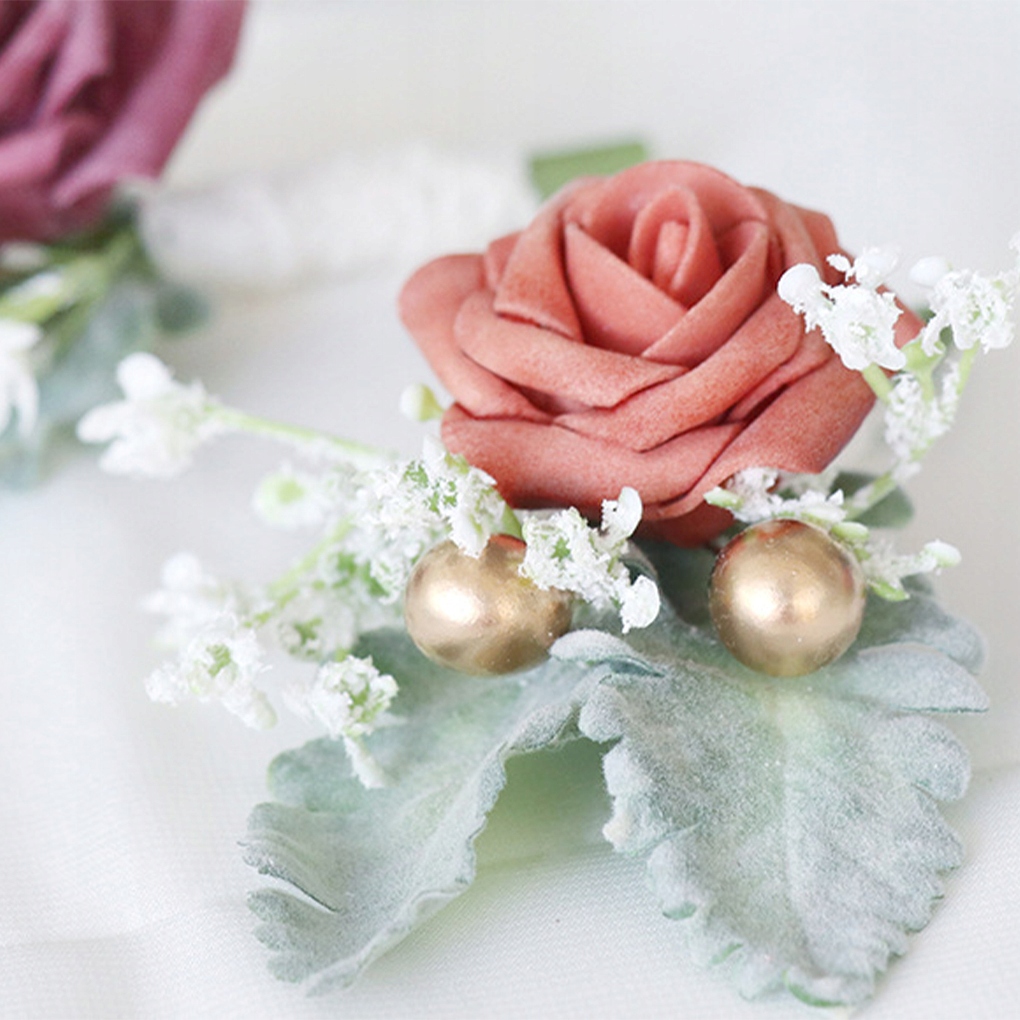Реалістичний вигляд: бутоньєрка нареченого має вишукано виготовлені квіти, що забезпечує реалістичний та елегантний вигляд на весіллях і заручинах.