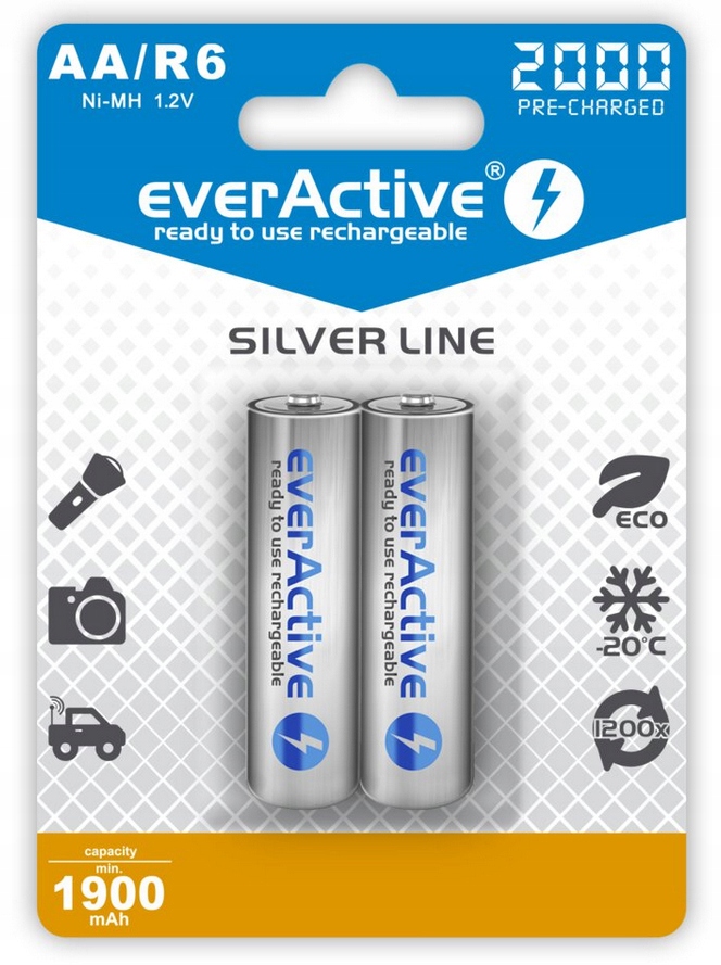 2 батареї EVERACTIVE R6/AA Ni-MH 2000 мАг готові до використання