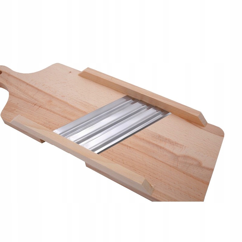 2-ножовий слайсер 36 см, виготовлений з бука, є необхідним інструментом на кожній кухні. Оснащений змінними лезами з нержавіючої сталі, він забезпечує ефективне і точне шинкування капусти та інших овочів. Завдяки міцній конструкції з деревини бука виріб гарантує довговічність і довговічність.