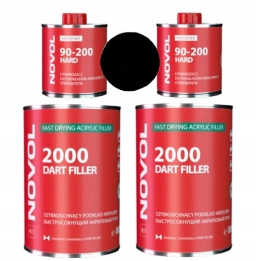 2× NOVOL 2000 Акриловий Грунт Швидковисихаючий Мокро по мокрому ЧОРНИЙ 1Л комплект