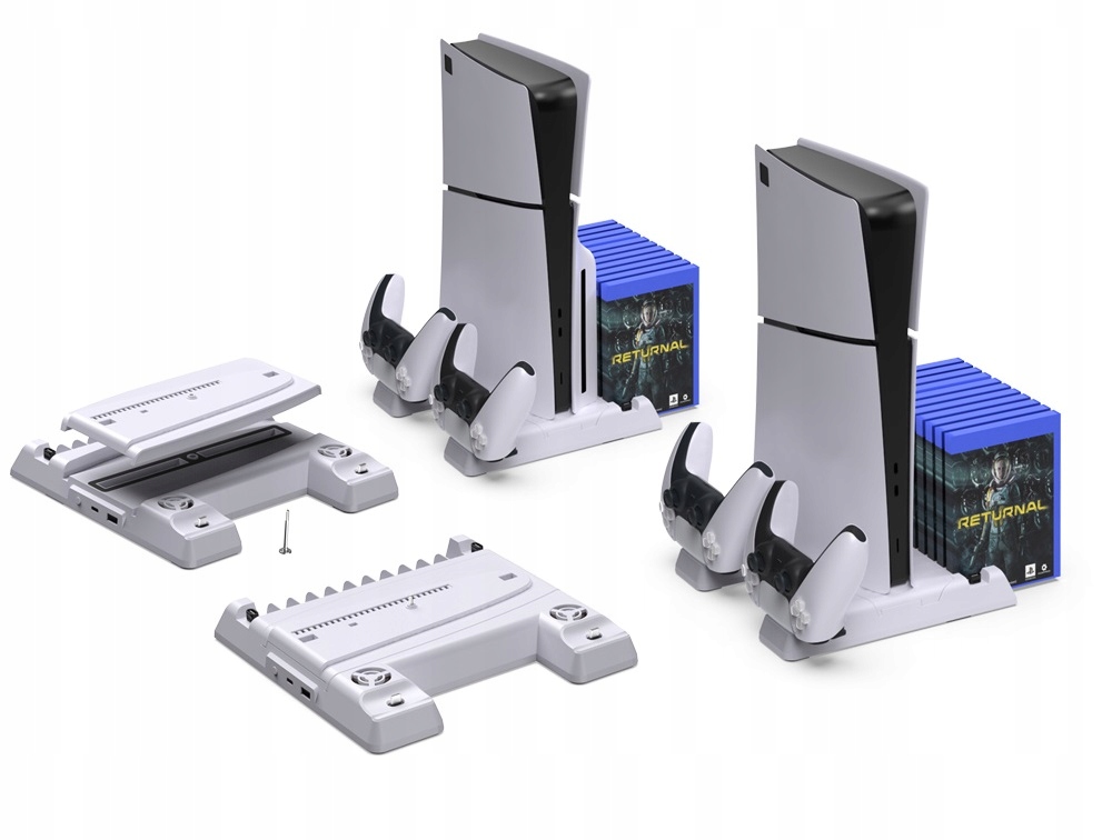 Сумісність: Підставка ідеально адаптована до консолей PS5 і PS5 Slim, забезпечуючи стабільність і безпечне використання.