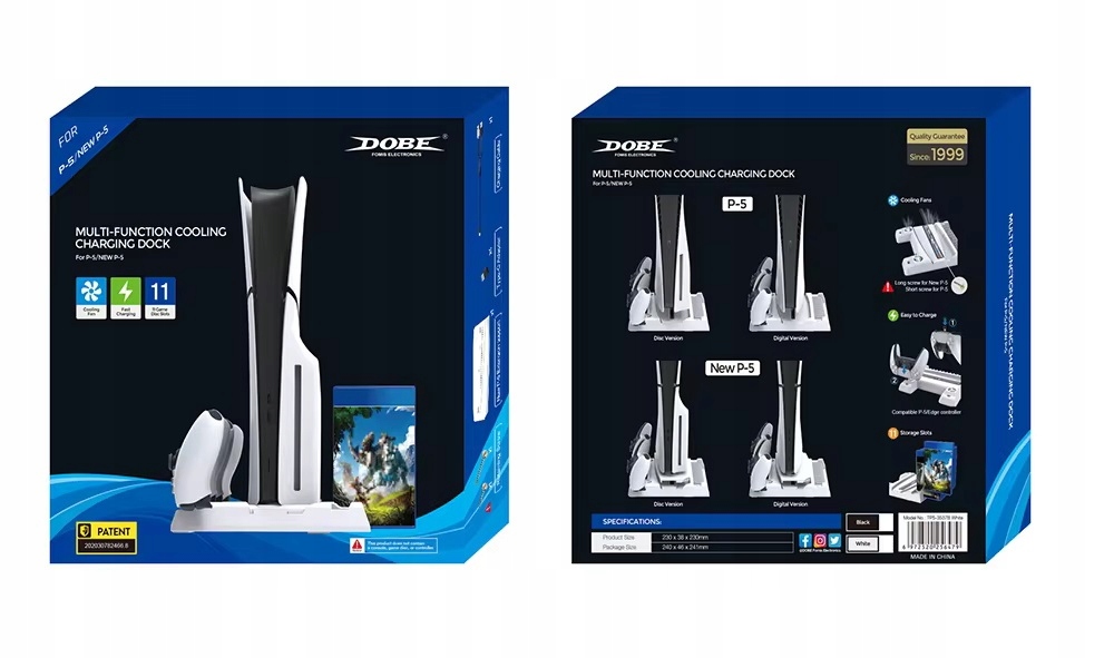 Охолоджувальна підставка для PS5 і PS5 Slim з док-станцією на 2 планшети + підставка на 11 ігор від DOBE, модель TP5-3537B.