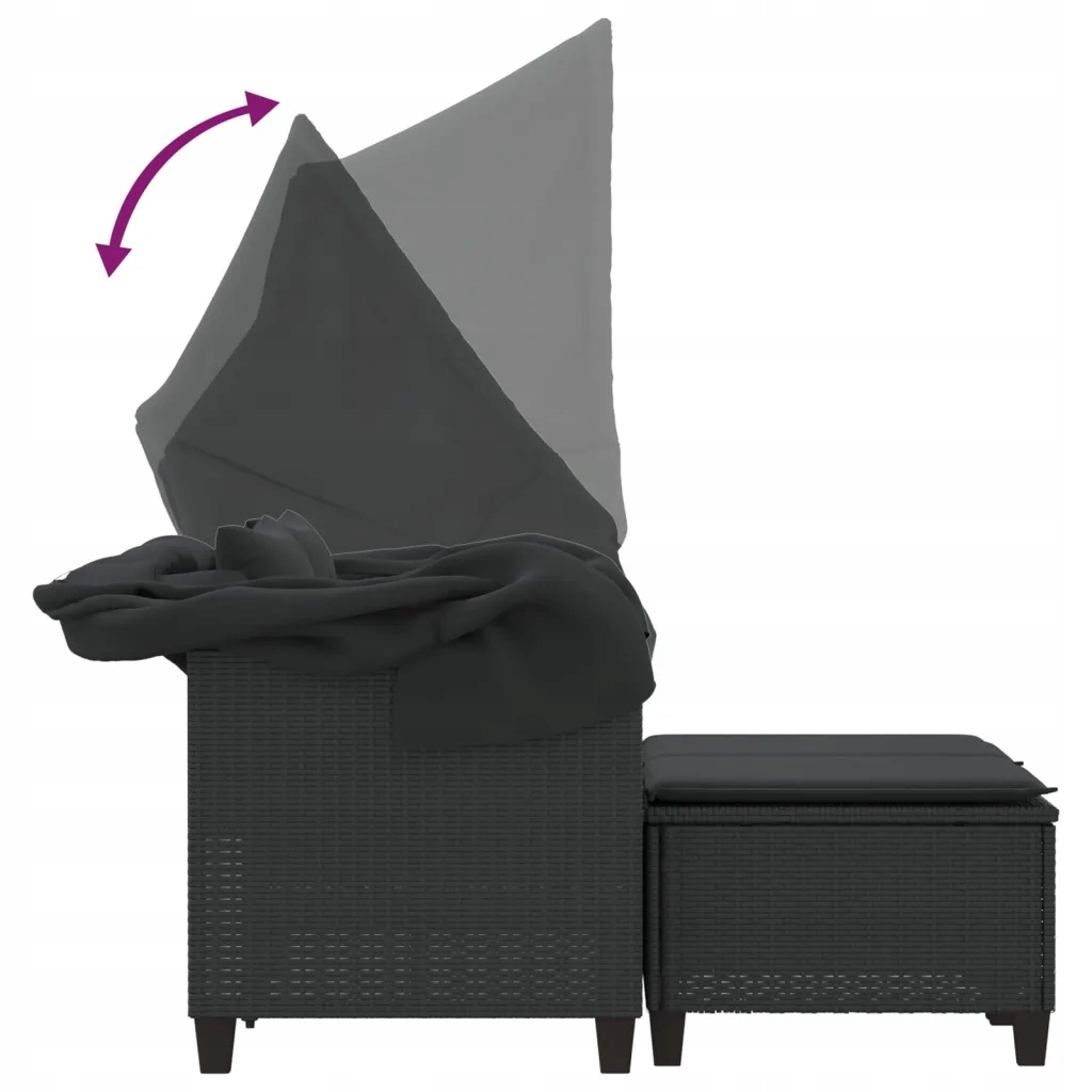 2-OS. Садовий диван з дахом і підставками, чорний, ротанг ПЕ