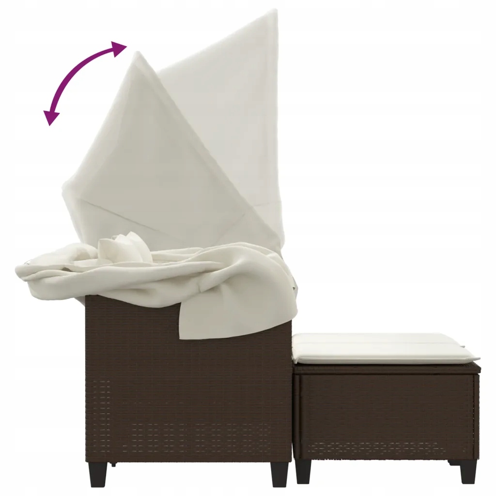 2 особи садовий диван, балдахін та підніжки, коричневий, ПЕ ротанг