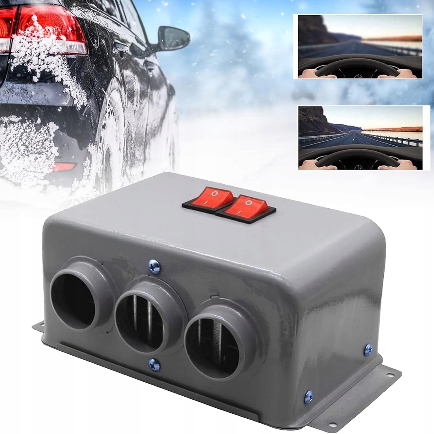 Цей зимовий автомобільний комплект опалення має двошвидкісний перемикач, вихідну потужність 600-800 Вт і три вентиляційні отвори. Він швидко нагрівається, надзвичайно практичний, а вентилятор для розморожування та видалення запотівання зі швидким нагріванням характеризується автомобільною якістю та елегантним зовнішнім виглядом.