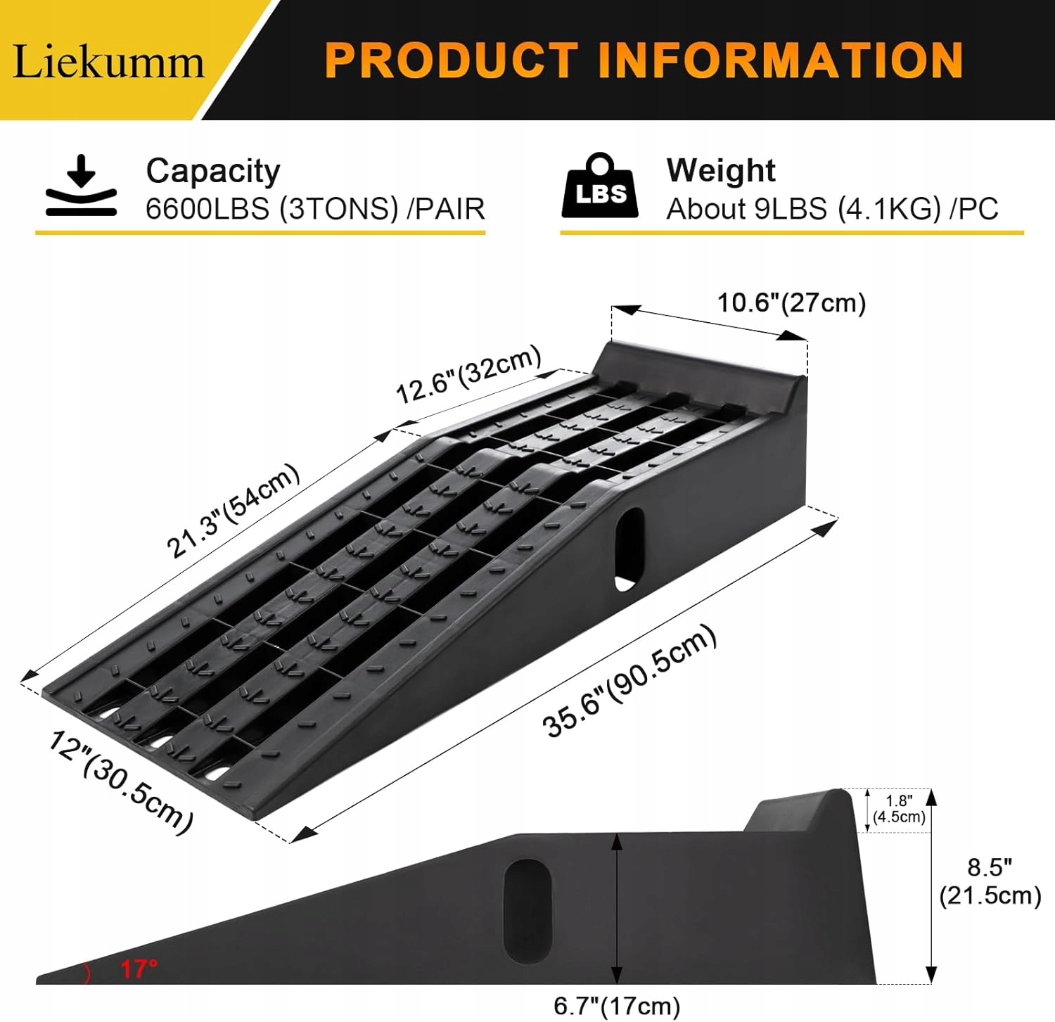 - ✅ Високоякісний матеріал. Ця рампа виготовлена з легкого, але ударостійкого та міцного PP матеріалу підходить для будь-якого автомобіля або вантажівки загальною вантажопідйомністю до 3 тонн (пара)