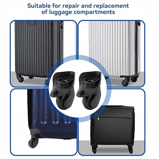 - Матеріал, стійкий до зносу: ці багажні колеса виготовлені з сильного абс і гумового матеріалу, міцних і стійких до зносу, а колеса можна використовувати для високої безпеки. Досить міцні та стабільні, перш ніж переломи, деформації та тріщини, замінні колеса для валізи можуть протистояти повторному використанню та забезпечити довге життя