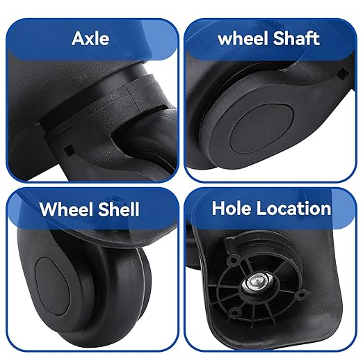 - Повна комбінація для вас: Ви отримаєте 4 замінні багажні колеса, 2 гвинти, ретельне та повне з'єднання, що відповідає вашим потребам; Слід пам’ятати, що колеса не є універсальними, колеса для заміни валіз для валіз підходять лише для жорстких валіз, з тим самим відстані та формою отворів