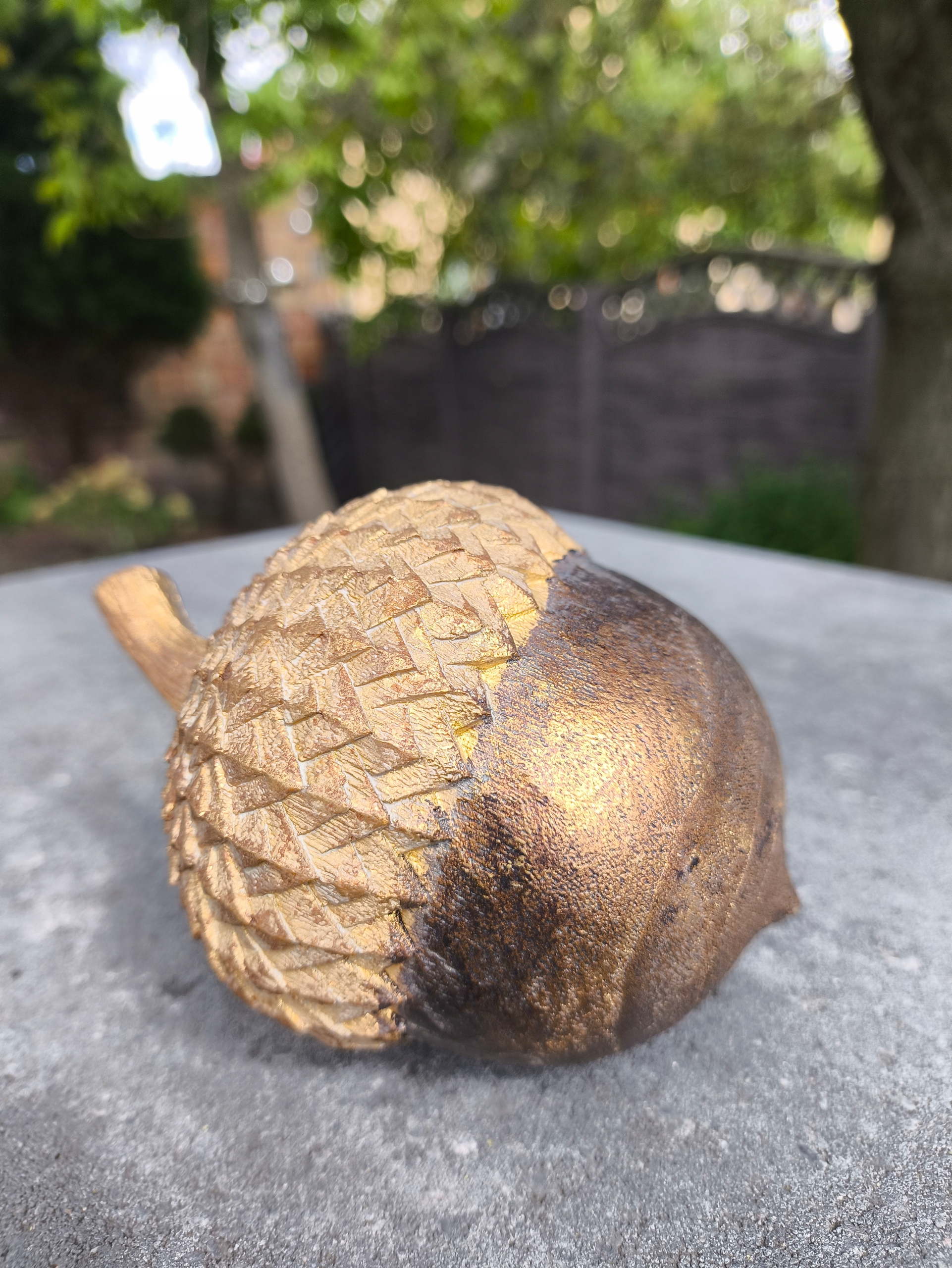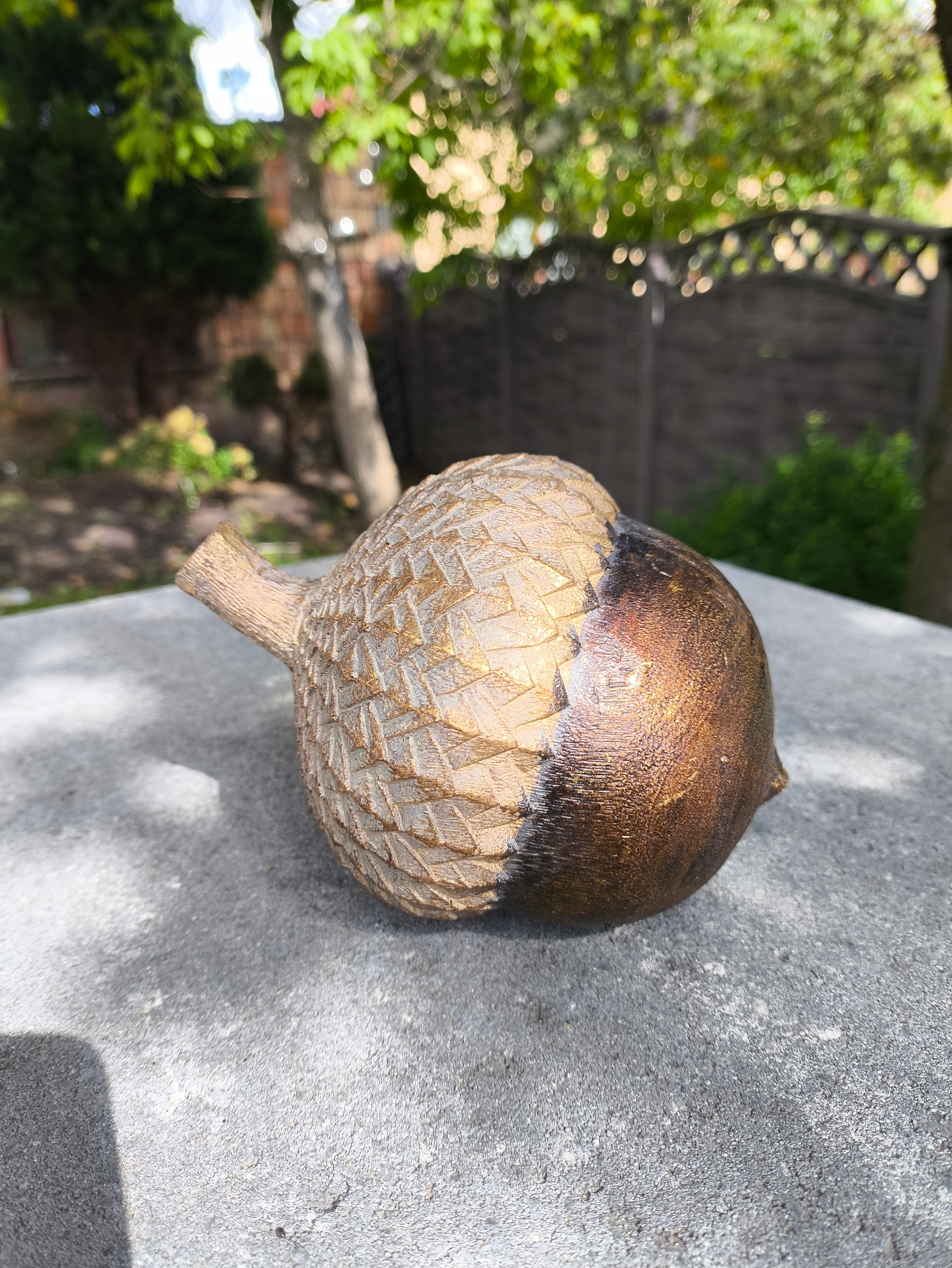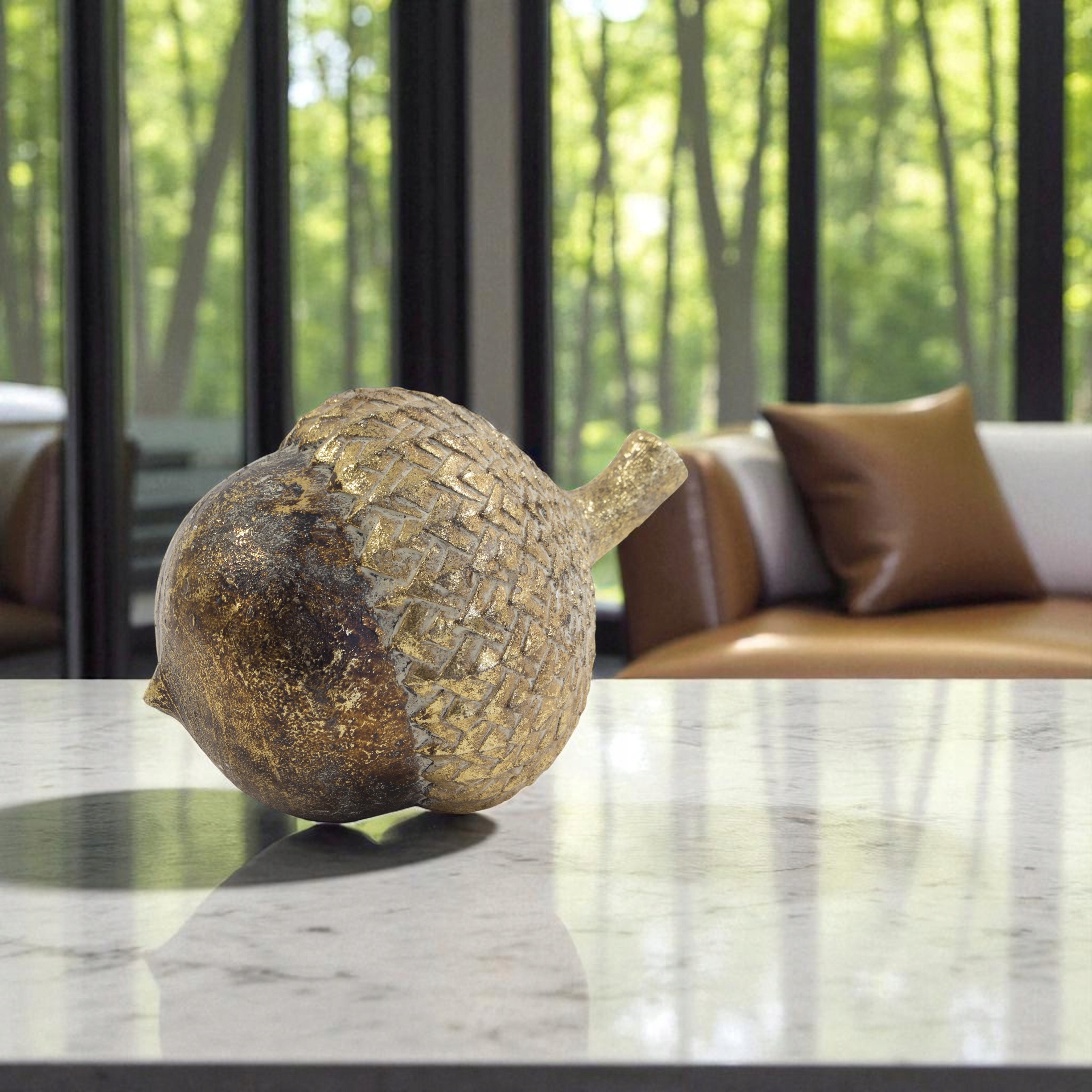 Додати елегантність та природний шарм до вашого інтер’єру. Набір з двох декоративних жолудів у відтінках золота та коричневого - це стильна прикраса, яка красиво виглядає у вітальні, їдальні або сезонні композиції.