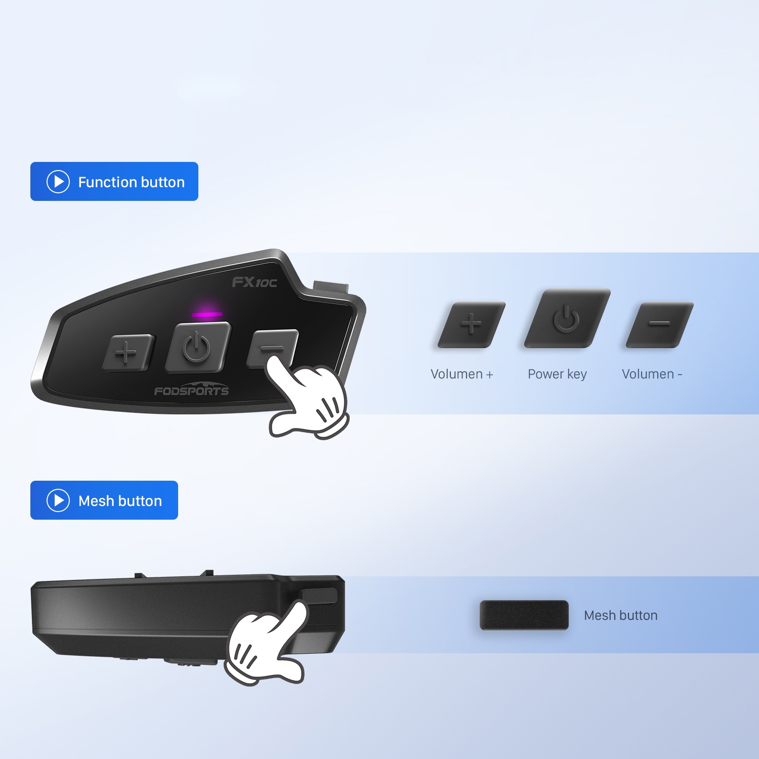 Система мотоциклів FX10C підходить для всіх типів шоломів. Мікрофон буму для відкритого шолома, модульний шолом щелепи, м'який мікрофон для інтегрального шолома.
