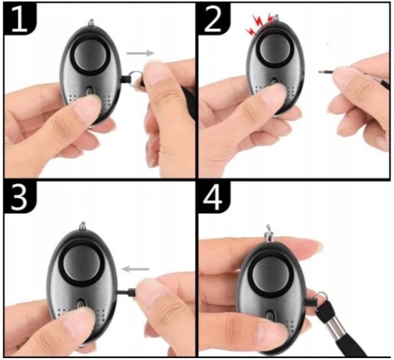 Особиста тривога має портативний розмір, її можна прикріпити до ключового кільця, рюкзака, жіночої сумки тощо . Підходить для студентів, людей похилого віку, дітей, жінок, нічних службовців тощо.