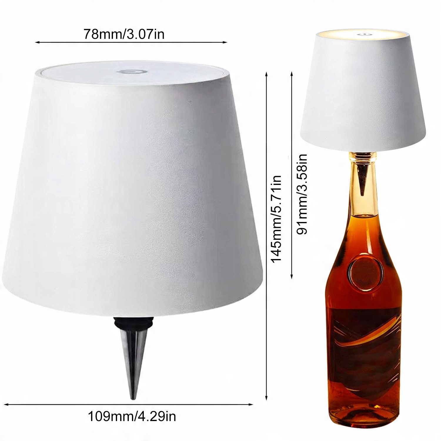 - 2 x світлодіодна лампа для пляшки з функцією дотику та конічним підключенням (білий) (білий)