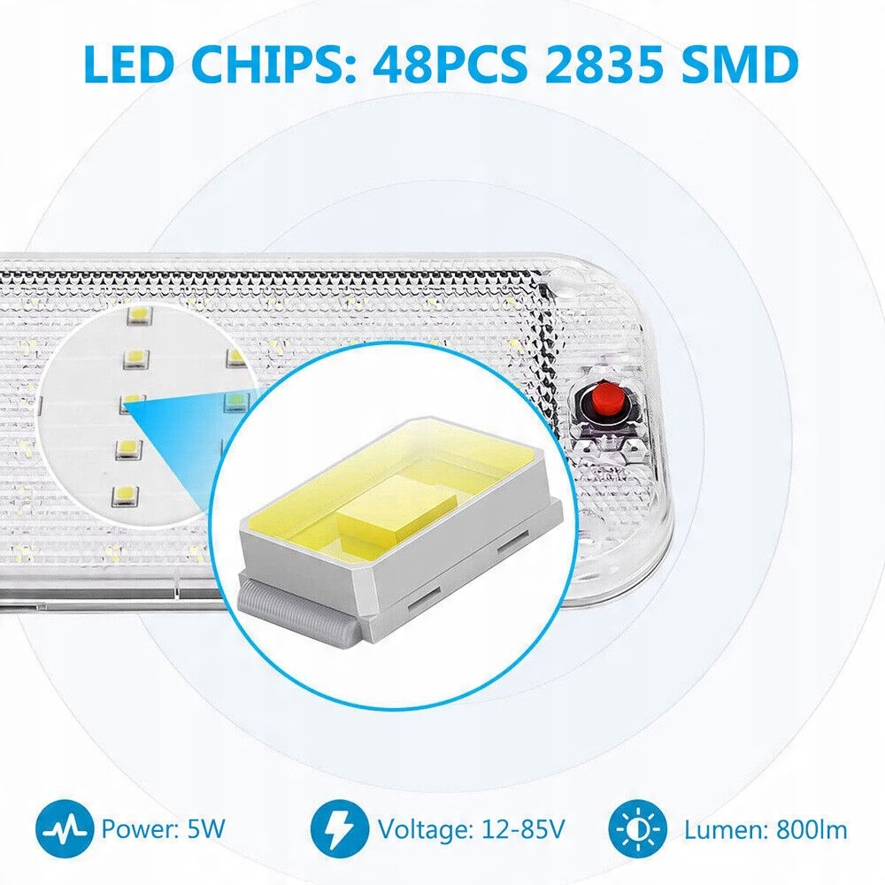2 PCS світлодіодна лампа всередині автомобіля Білий 48LED 12V-85V 5 Вт для багажника