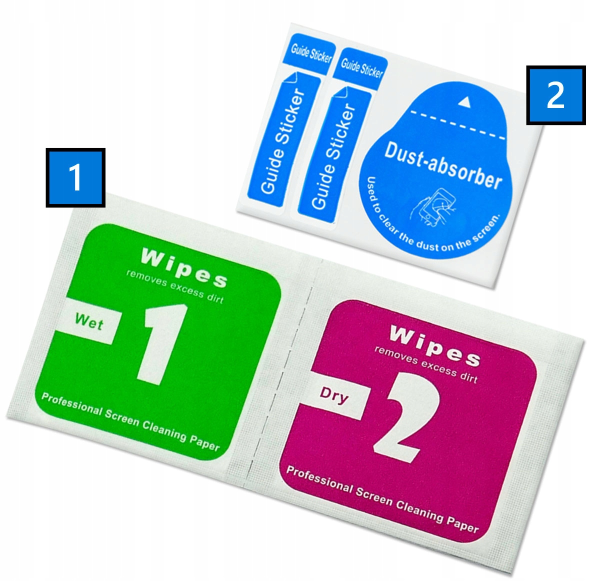 1⃣ Дві тканини: мокрі (мокрі) і сухі (сухі). Використовуйте їх для ідеального очищення екрана перед тим, як поставити фольгу .