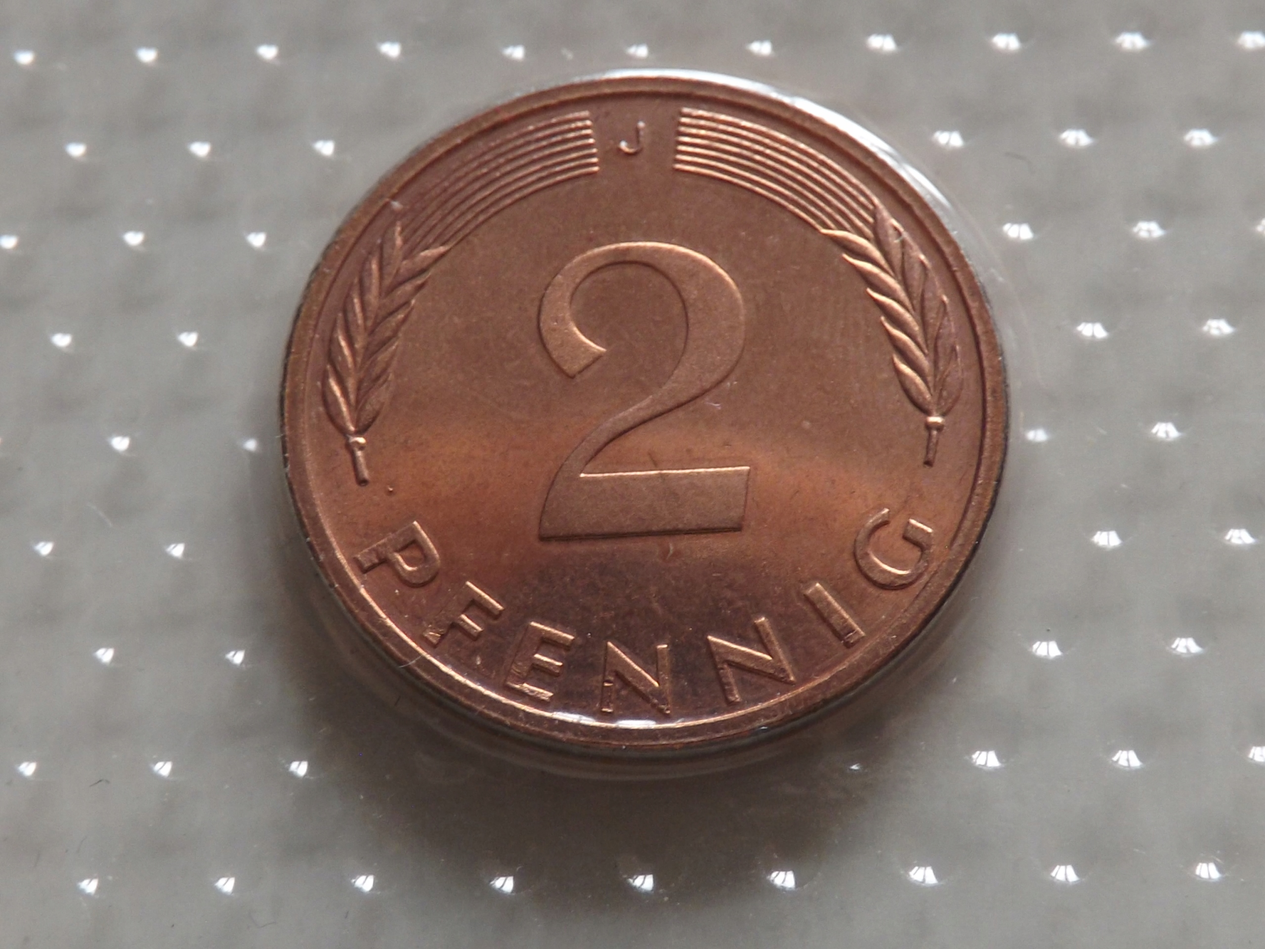 2 пфеніги 1975 Дж, монета з оригінального вінтажного набору UNC