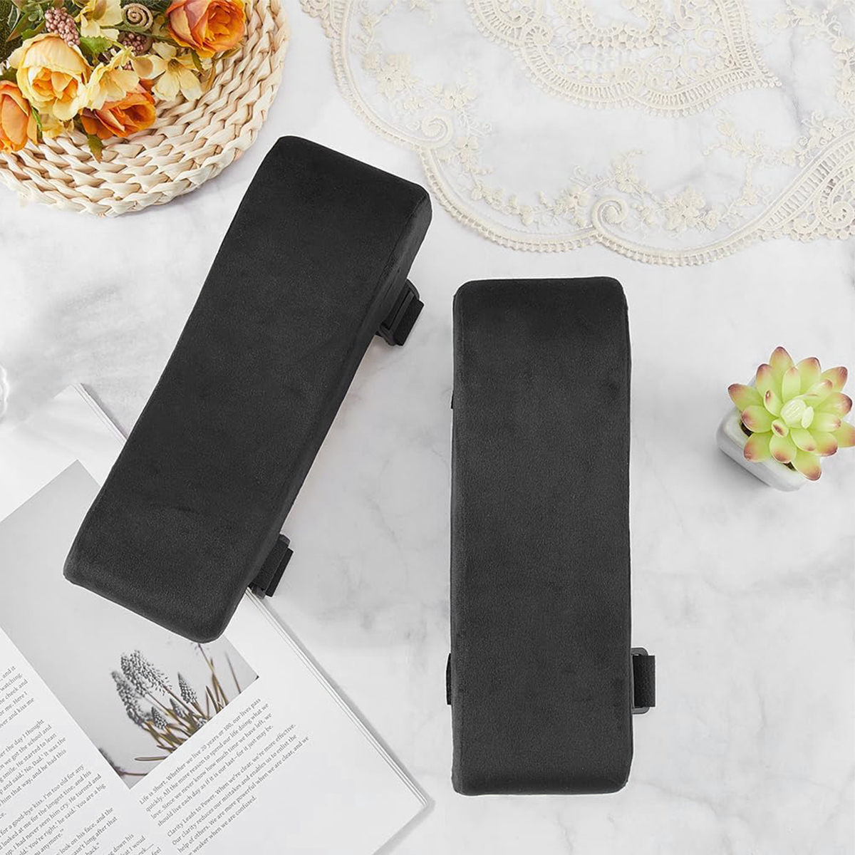 ⭐2x Універсальні підлокітники, універсальні для подушок для крісла, 2 шт. Ергономічні м’які для офісного крісла, чорні