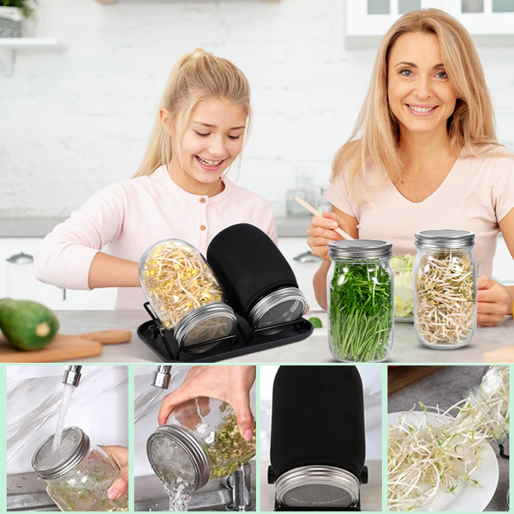- Ви можете легко виростити власні паростки навіть без ґрунту. Завдяки цьому ви можете не тільки надихнути сім'ю та друзів на роль самостійно, але й можете надихнути своїх дітей навчитися рости паростків і розважатися. Наше скло проростання створює ідеальний мікроклімат проростання. Через 4 - 6 днів смачні паростки готові.