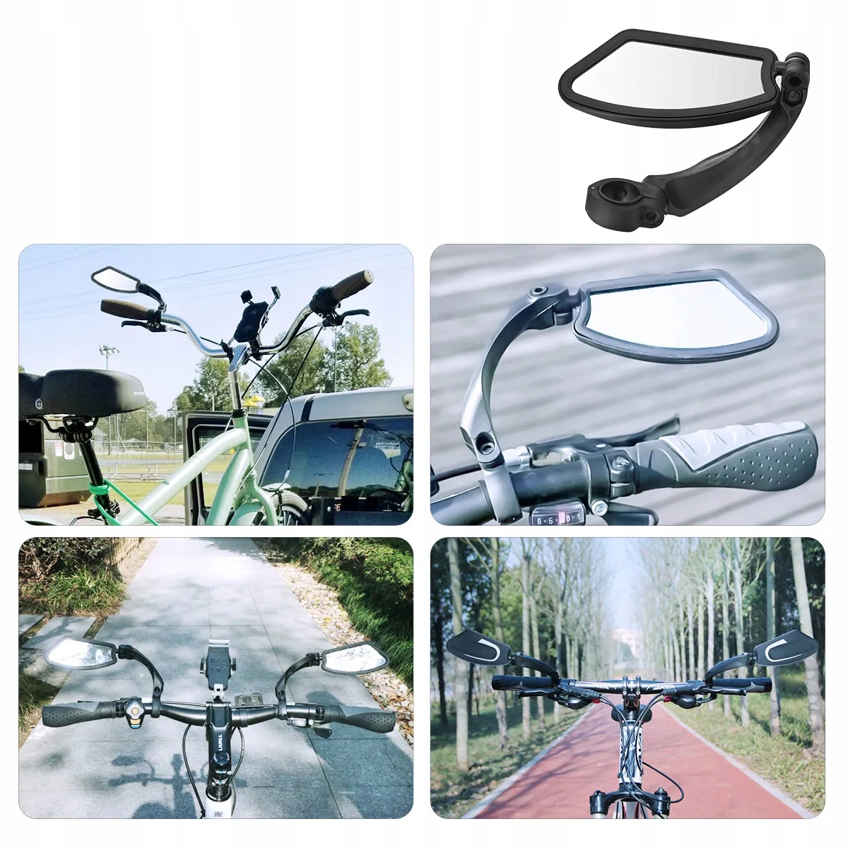 Дзеркало рульового управління підходить для всіх звичайних велосипедних рульових коліс і може бути встановлено збоку. Призначений для міста, гори, дорожніх велосипедів, рульових коліс, велосипедів з деревами. Дитячі велосипеди та інші проекти.